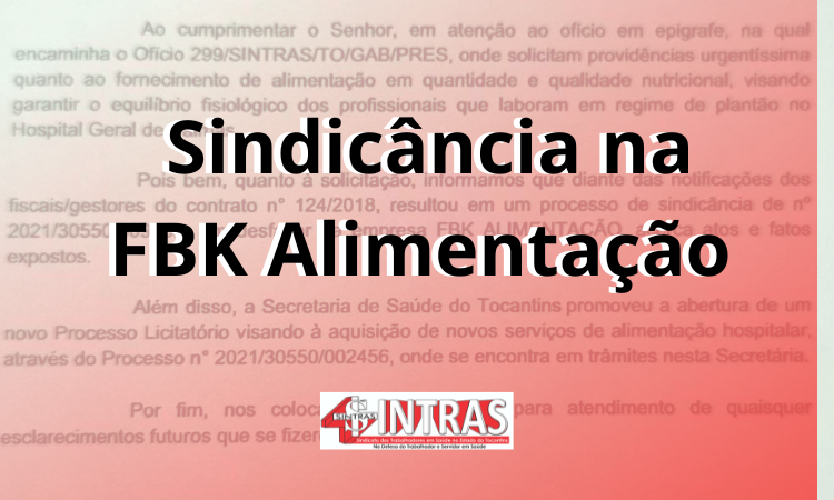Governo informa ao Sintras que uma sindicância foi aberta para apurar as irregularidades nos serviços prestados pela empresa FBK ALIMENTAÇÃO no Hospital Geral de Palmas.